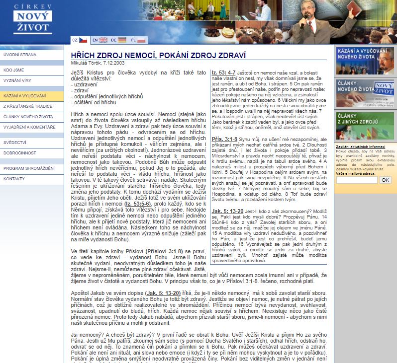 Nový Život se pomalu, nenápadně a podloudně mění. Přečtěte si článek níže a zamyslete se, jaké důsledky mohl mít takovýto fundamentalistický výklad na psychickou rovnováhu člověka. Uvažujte, co člověk takovýmto výkladem získává a naopak jakým rizikům se může vystavit, přijme-li tyto výroky jako absolutní pravdu. Uvažujte, proč má někdo vůbec potřebu takovýto článek psát a proč by se někdo mohl z této „dobré zprávy“ radovat. Uvažujte, proč se sbor tak změnil a jestli změna byla někdy něčím vysvětlena. Přemýšlejte, jestli věci řečeny níže, nejsou náhodou blud a jak asi autor z tohoto bludu činil pokání. Uvažujte, zda nemohl náhodou autor někoho pro nesouhlas s tímto učením vyloučit. Uvažujte, jestli by se tehdy „vzpurné osobě“ přišel autor dnes omluvit.