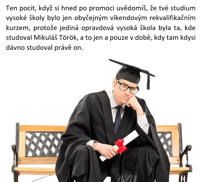 Ten pocit, když si hned po promoci uvědomíš, že tvé studium vysoké školy bylo je obyčejným víkendovým rekvalifikačním kurzem…