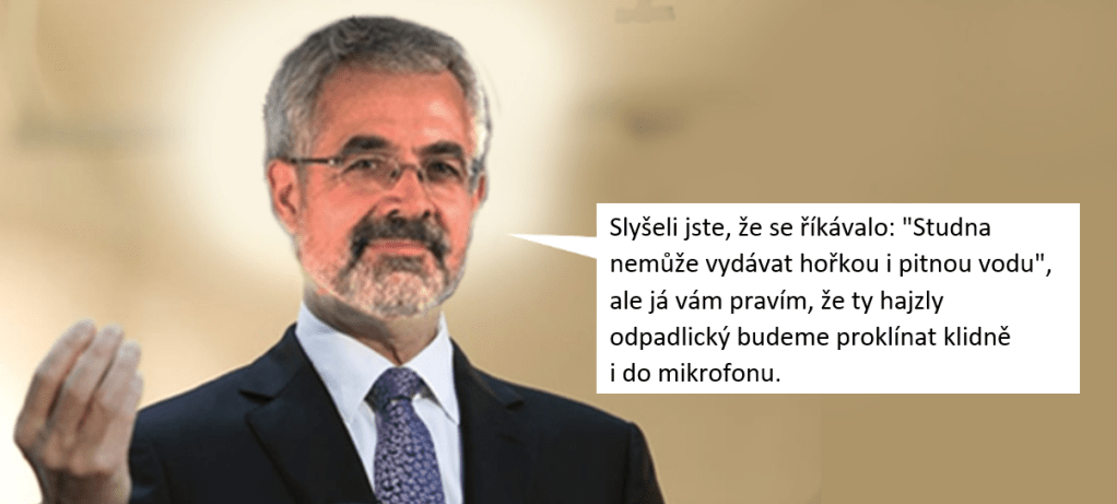 Slyšeli jste, že se říkávalo: „Studna nemůže vydávat hořkou i pitnou vodu“, ale já vám pravím, že ty hajzly odpadlický budeme proklínat klidně i do mikrofonu.