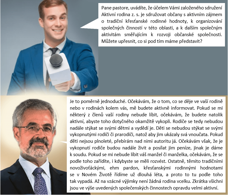 Pane pastore, uvádíte, že účelem Vámi založeného sdružení Aktivní rodina z. s. je sdružovat občany s aktivním zájmem o tradiční křesťanské rodinné hodnoty, organizovat společné činnosti v této oblasti a další společné aktivity směřující k rozvoji občanské společnosti. Můžete upřesnit, co si pod tím máme představit?